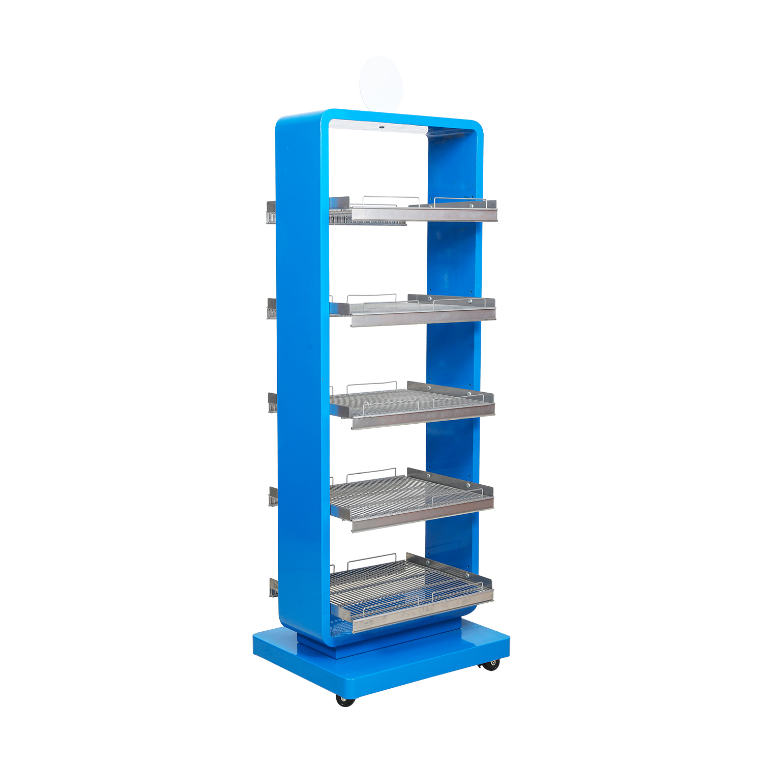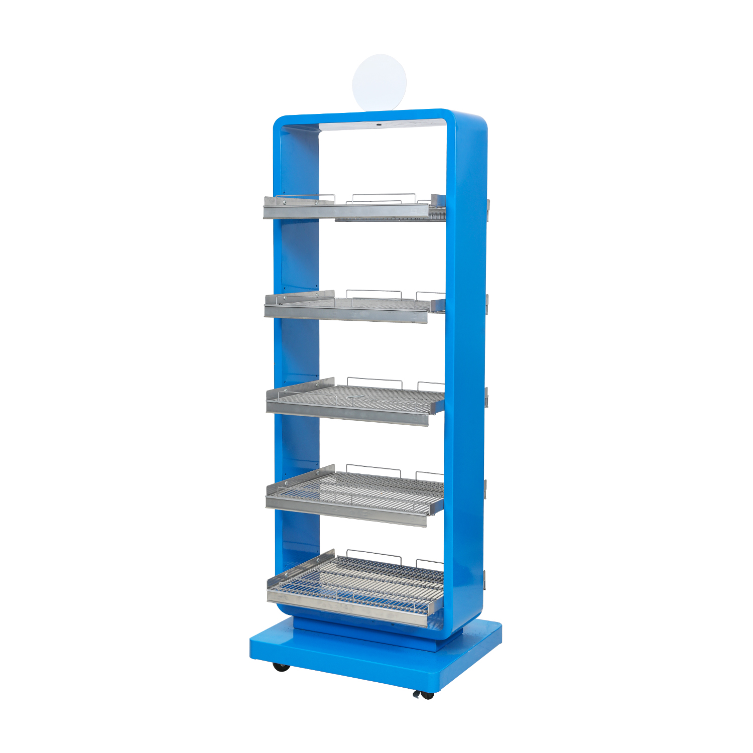 Enhanced product exposure: Open grid design and bright blue frame draw customer attention, making displayed items stand out in retail settings.