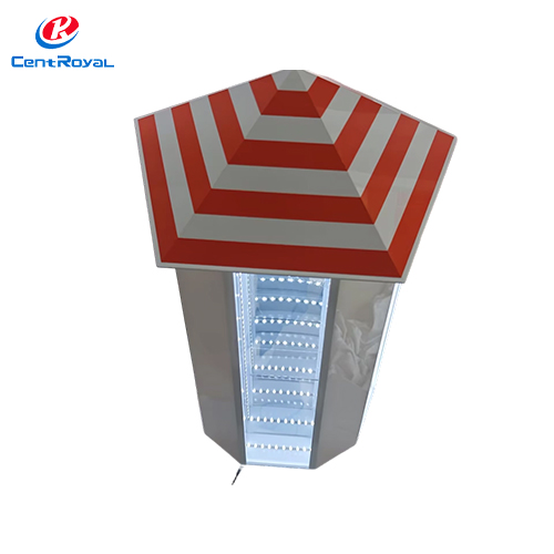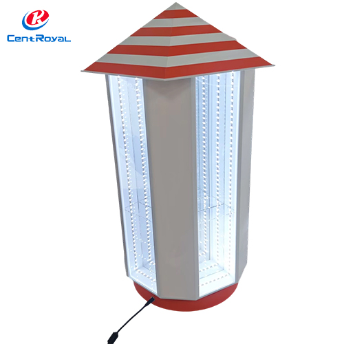 Octagonal lighthouse shape: Unique red-white striped pyramid top creates strong visual appeal.